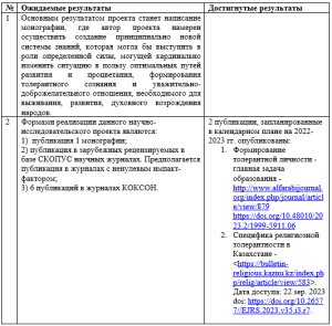 Цель проекта: Цель исследования состоит в социально-философском анализе сущности толерантности и его практического воплощения в развитии казахстанского общества, анализа причин социальной дифференциации казахстанского общества, где очевидно социальное расслоение и усиление социального антагонизма. Реализация принципа толерантности представляет собой повседневную политическую практику по взаимодействию культур в многонациональном Казахстане, что только подчеркивает актуальность исследования толерантности.