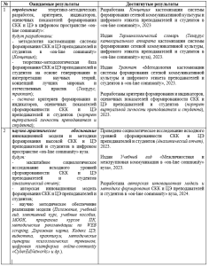 Цель проекта: определить научно-методологические основы формирования СКК и ЦЭ преподавателей и студентов в цифровом пространстве «on-line community» высшего учебного заведения, разработать методы и способы их реализации на практике и их методическое обеспечение.