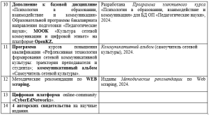 - M. Abdigapbarova, B.T. Kerimbayeva, A.M. Baikulova Pedagogical Conditions Of Digital Etiquette For Teachers And Students In The “Online Community” University // Инновационные идеи молодых исследователей / Сборник научных статей по материалам XIII Международной научно-практической конференции (1 декабря 2023 г., г. Уфа). В 3 ч. Ч.2 / – Уфа: Изд. НИЦ Вестник науки, 2023. – 132 с.